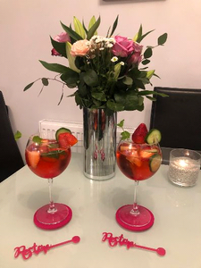 Add the pink gin, pink prosecco and raspberry and elderflower light infusions and give it a little stir. You will already see the lovely pink colour that's been created but then add the grenadine to each glass and watch the lovely vibrant pink colour form!! Add the strawberries, sliced cucumber and mint, then garnish by placing a large strawberry and slice of cucumber on the rim of each glass.